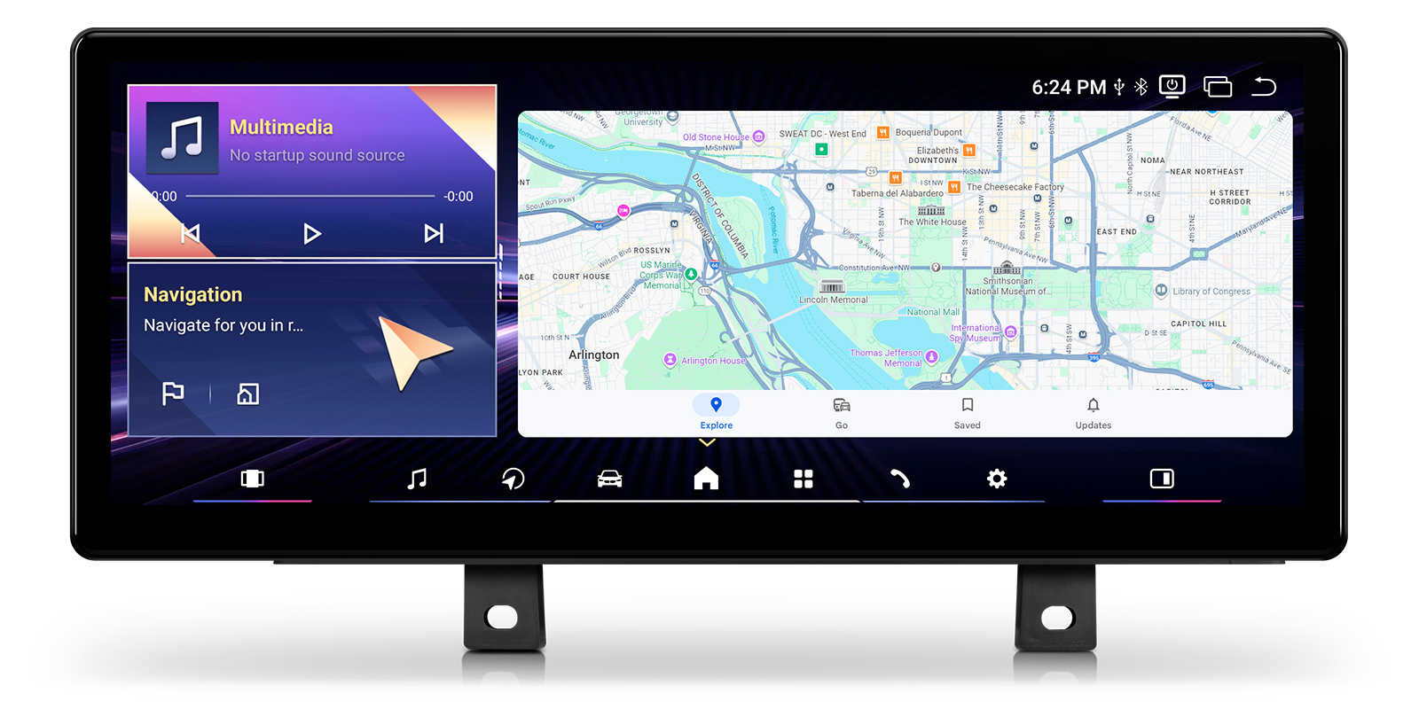 クアルコムの処理能力とBMW純正システムを統合。ユーザーは、iDriveコントローラ、ラジオ、ステアリングホイール制御など、すべての純正機能を保持したまま、インターフェースを切り替えることができます。