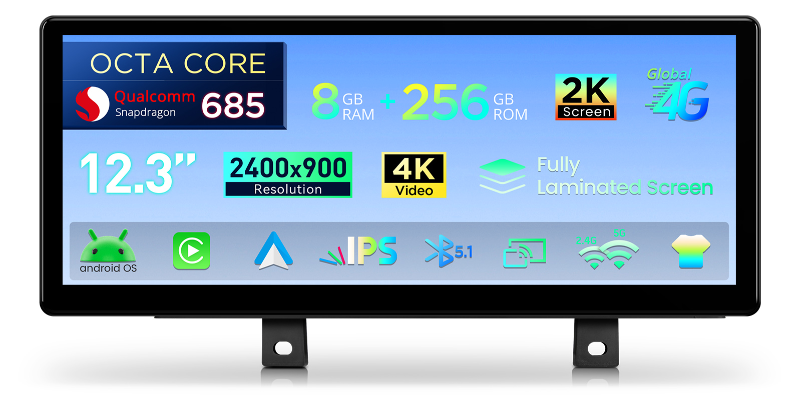 12.3 “十分に全体的な 4G ネットワーク、無線 CarPlay、フル装備のアンドロイド自動、NBT システムが付いている BMW 3/4 のシリーズ /M3 /M4 のための 4K ビデオ プレーバック、習慣適合のための作り付け QHD 2K IPS スクリーンのアンドロイド 14 オクタ中心 64Bit Qualcomm 685 のプロセッサ 8GB + 256GB ROM 車のマルチメディアのナビゲーション・システム