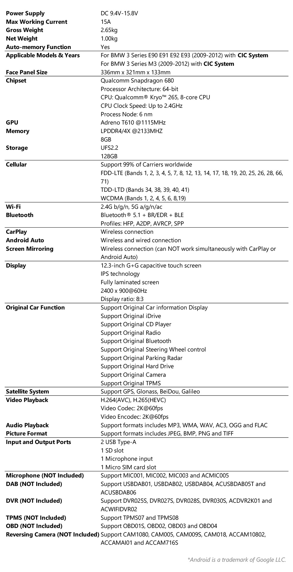 注:このユニットは、CICシステムを搭載したBMW車用です。
