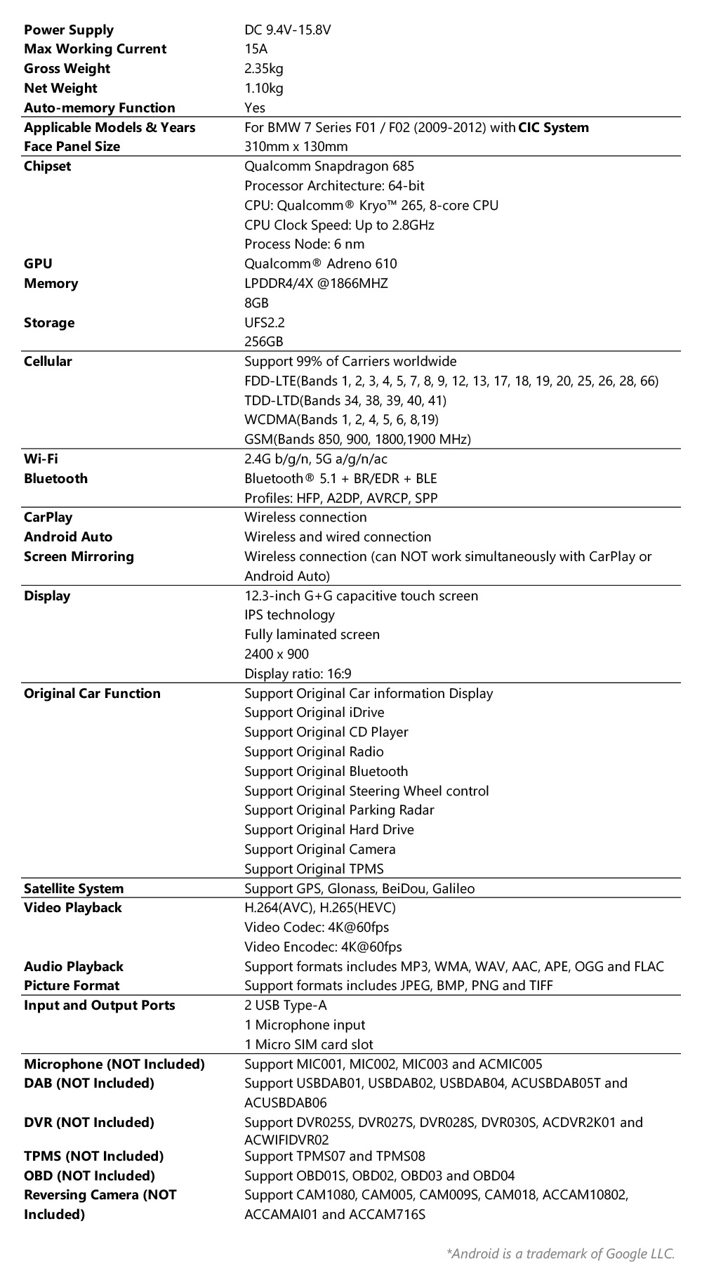 12.3 “十分に薄板にされた QHD 2K IPS スクリーン アンドロイド 14 オクタ中心 64Bit Qualcomm 685 のプロセッサ 8GB + 256GB ROM 車のマルチメディアのナビゲーション・システム作り付けの全体的な 4G ネットワーク、無線 CarPlay のフル装備のアンドロイド自動、CIC システムが付いている BMW 7 シリーズ F01/F02 のための 4K ビデオ プレーバック、注文適合