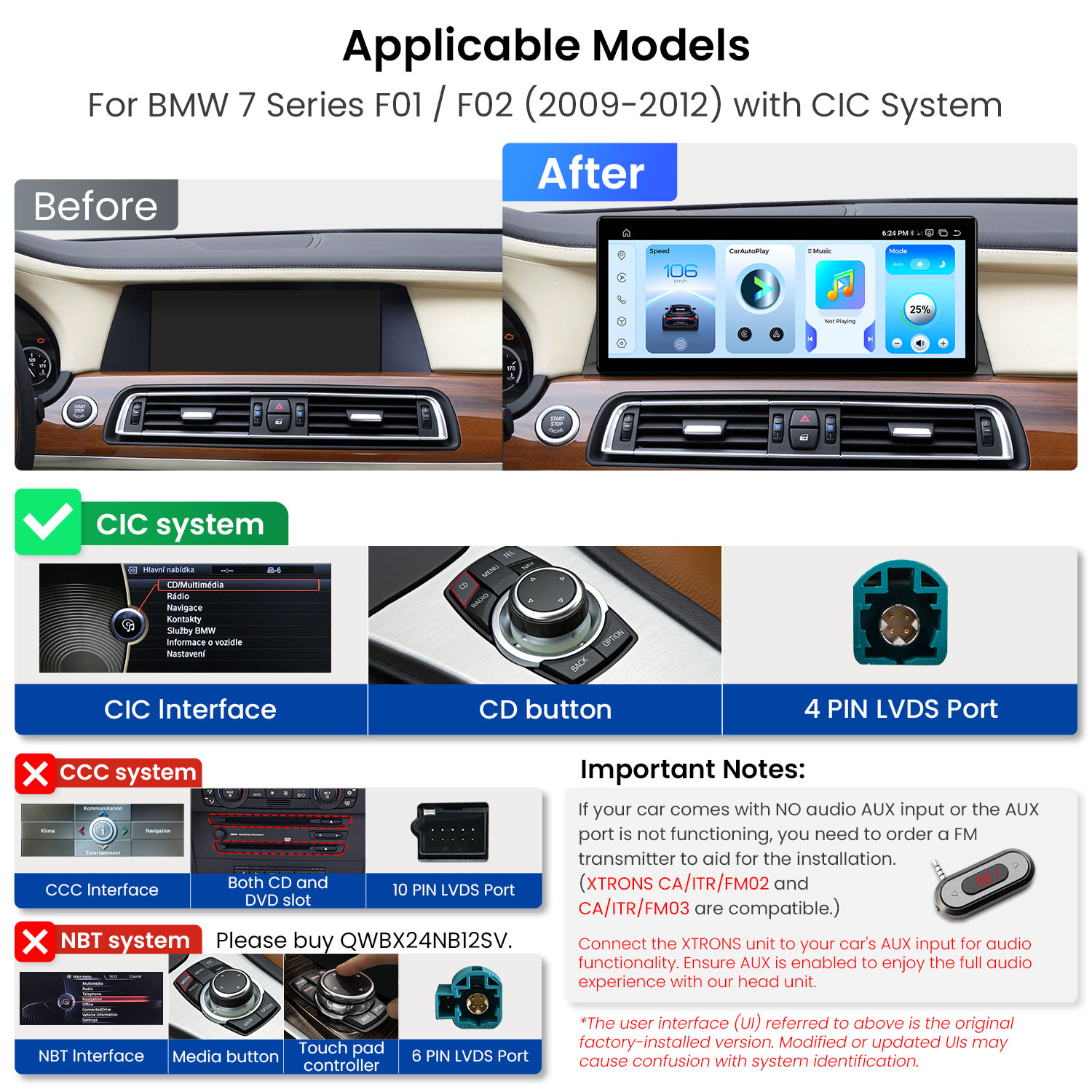 CIC システムが付いている BMW 7 シリーズ F01/F02 (2009年-2012年)のため