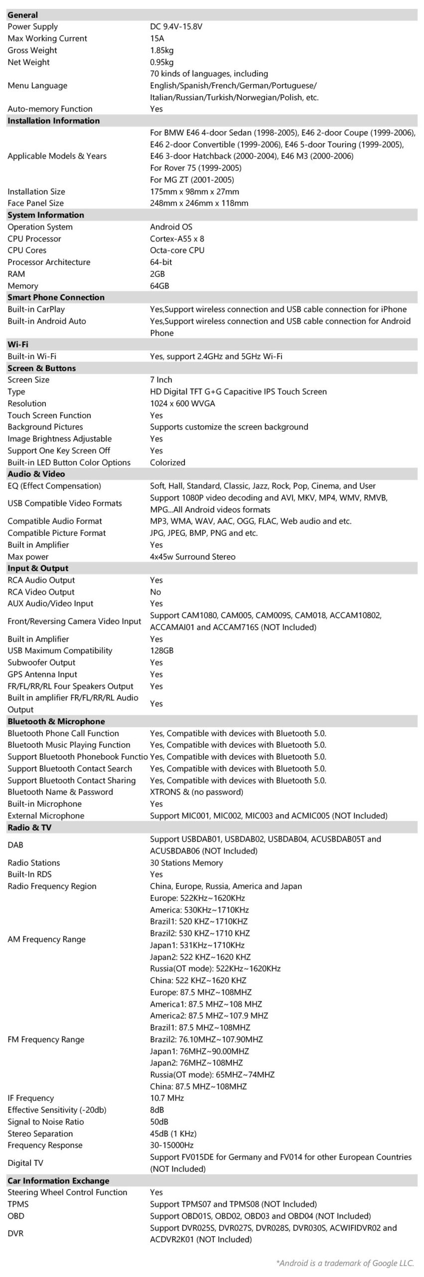 最適化されたアンドロイドOSオクタコア2GB DDR4 RAM + 64GBソリッドステートROM 7″ 1024×600 IPSスクリーンカーステレオGPSナビゲーションシステム デュアルバンドWi-Fi、RDS TCB001HQアンプ内蔵CarPlay&アンドロイドオート&SI4755ラジオ、BMW/ローバー/MGのためのAHDカメラ、1080Pビデオ再生をサポートしています。