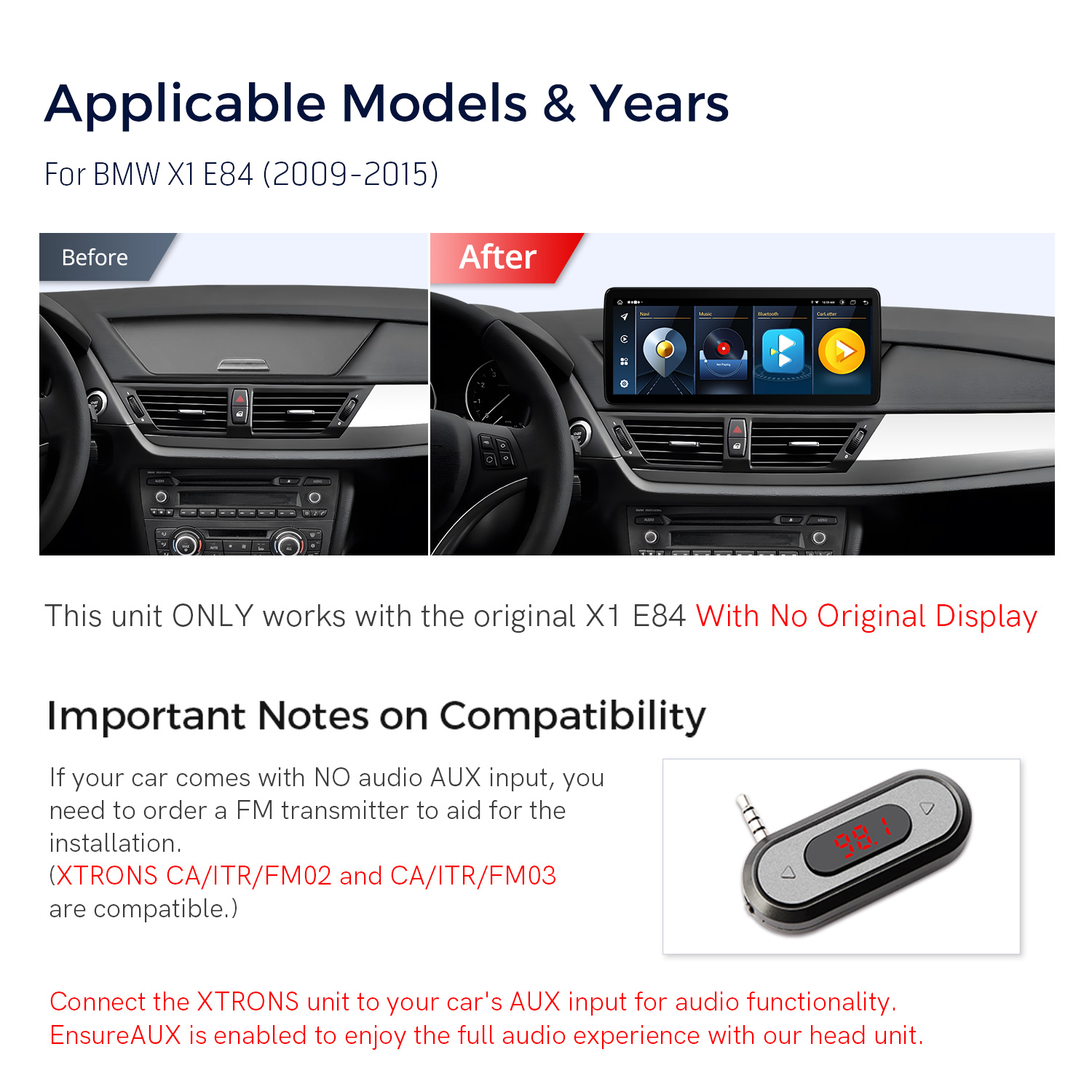 1.この単位は元の表示なしで元の BMW X1 E84 とだけ働きます。