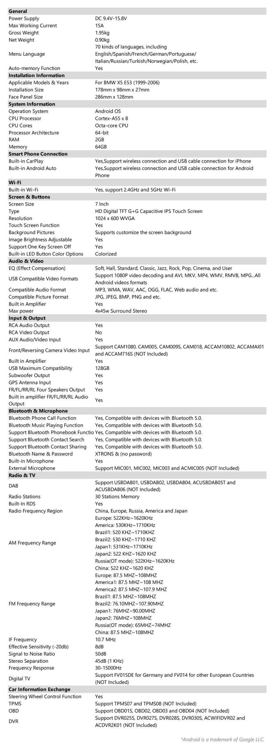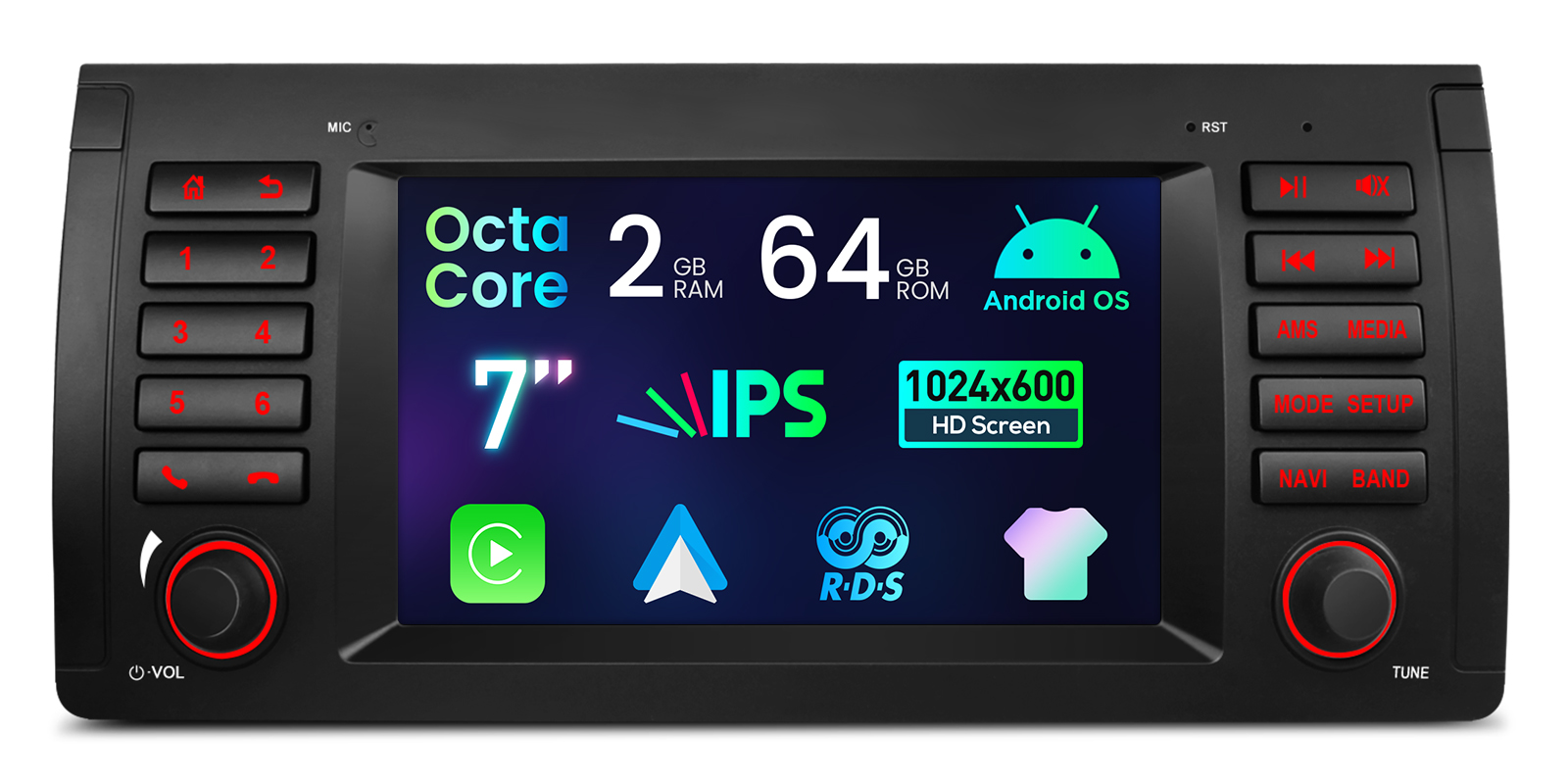 最適化されたアンドロイド OS オクタ コア 2GB DDR4 RAM + 64GB ソリッド ステート ROM 7″ 1024×600 IPS スクリーン車のステレオ GPS のナビゲーション システム デュアル バンド Wi-Fi の、作り付けの CarPlay 及びアンドロイド自動及び RDS TCB001HQ のアンプが付いている SI4755 無線は、AHD のカメラ、BMW X5 E53 のための 1080P ビデオ プレーバックを支えます