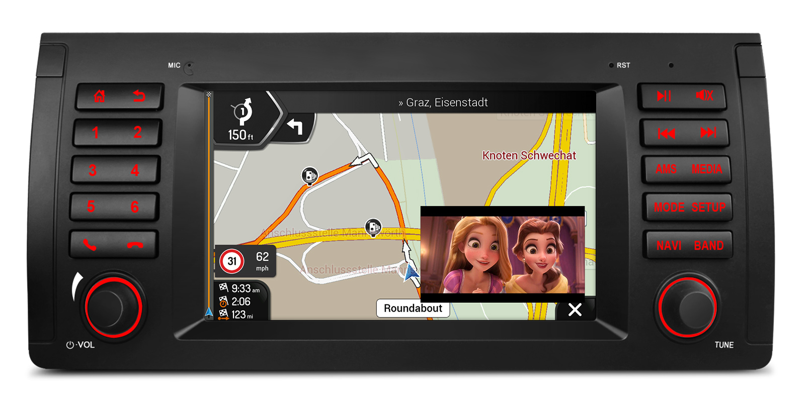 ウィンドウでは、カースピード、ナビゲーション、ビデオ再生