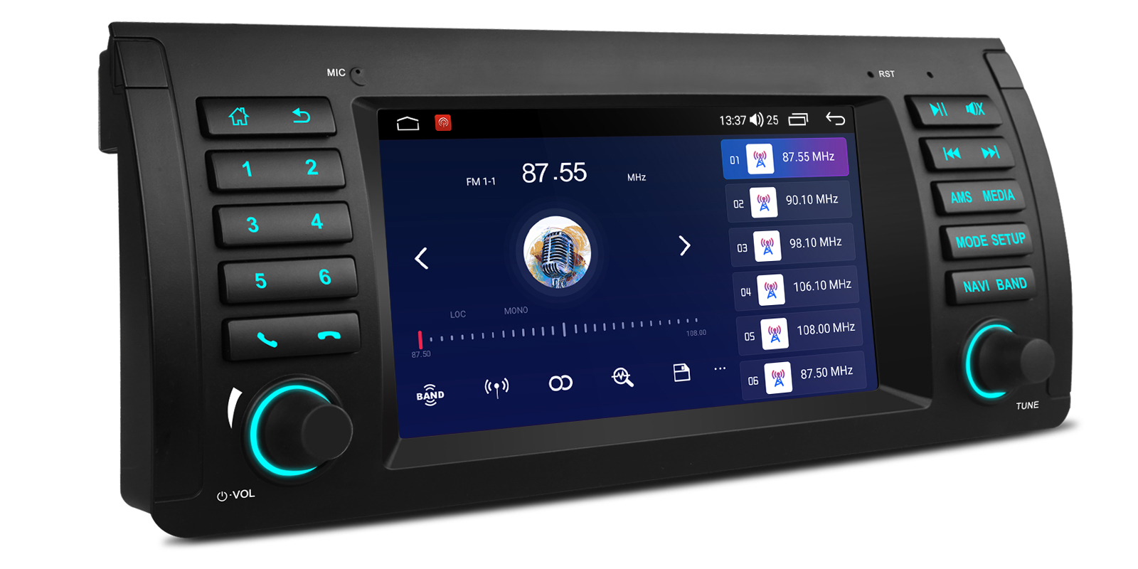 先進のEQシステムがオーディオのカスタマイズを可能にし、4x45W TCB001HQアンプがさまざまな音量レベルで安定したサウンド出力を提供します。この組み合わせにより、車内全域でバランスの取れたオーディオを提供します。