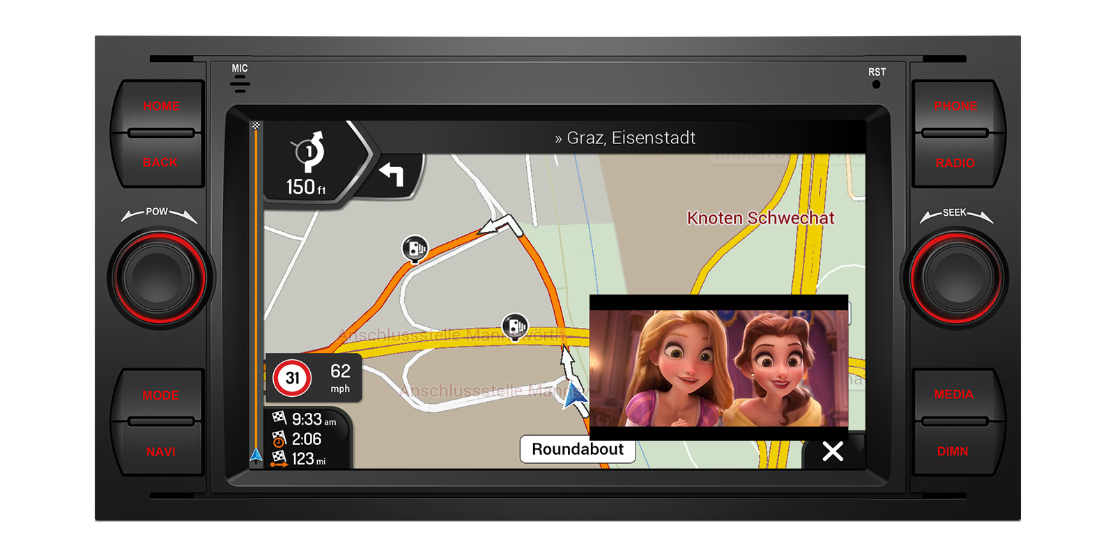 ウィンドウでは、カースピード、ナビゲーション、ビデオ再生