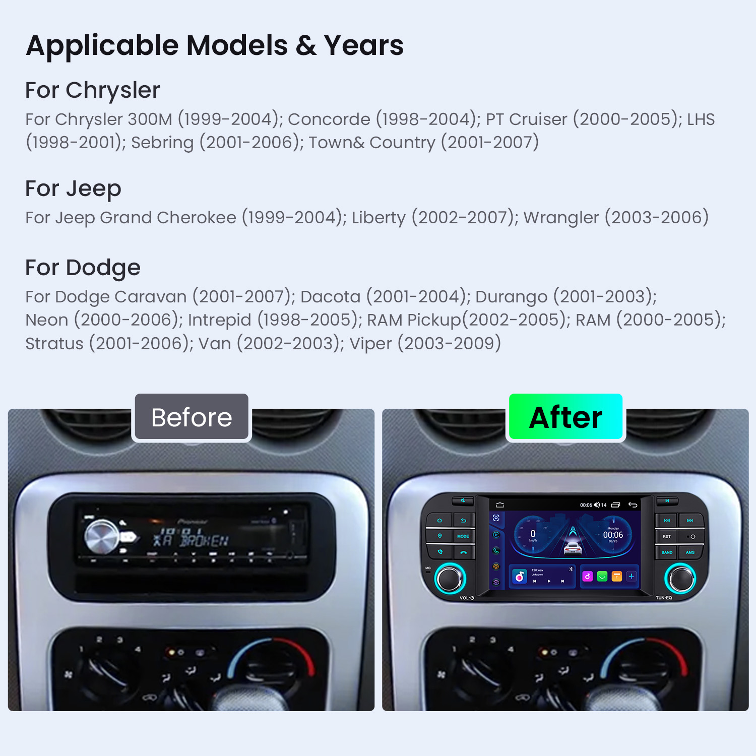 クライスラー 300M (1999-2004 年)のため; コンコルド(1998-2004 年); PT の巡洋艦(2000-2005 年); LHS (1998-2001 年); Sebring (2001-2006 年); Town& Country (2001-2007 年)