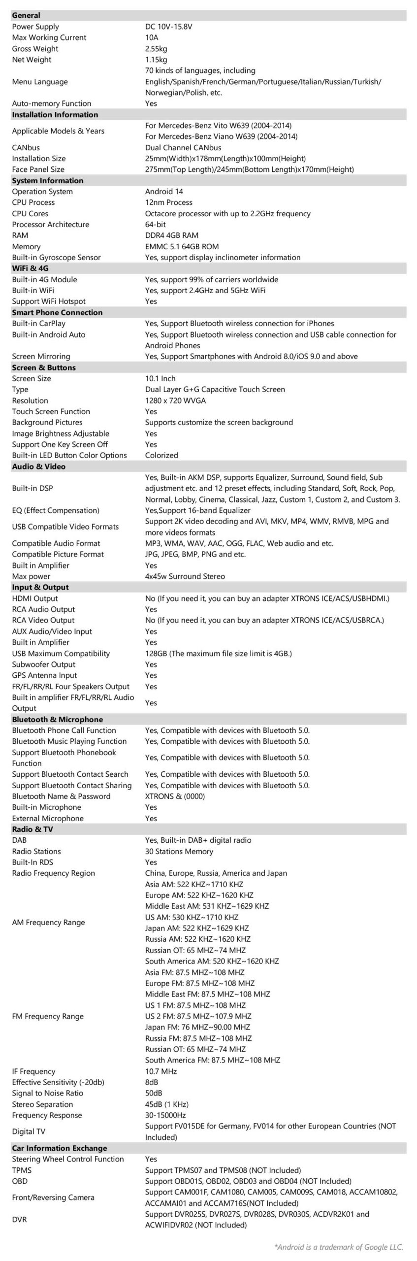 アンドロイド14オクタコア4GB DDR4 RAM + 64GBソリッドステートROM 10.1 “内蔵DAB +、統合されたグローバル4Gソリューション、内蔵のCarPlay&アンドロイドオート&AKM DSP&Gryoscopeセンサー、RDS、TDA7388アンプ、USBテザリング、サポートAHDカメラ、メルセデスベンツビアーノVito W639のための2Kビデオ再生と1280×720容量性タッチスクリーン車のステレオGPSナビゲーションシステム