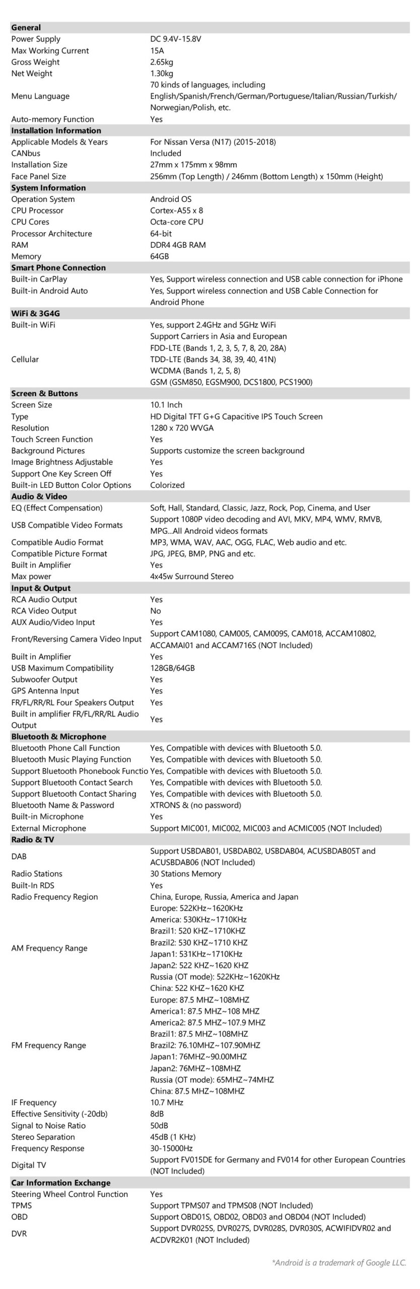 最適化されたアンドロイドOSオクタコア4GB DDR4 RAM + 64GBソリッドステートROM 10.1 “統合された4Gソリューションと1280×720 IPSスクリーンカーステレオGPSナビゲーションシステム、RDS TCB001HQアンプ内蔵CarPlay&アンドロイドオート&SI4755ラジオ、サポートAHDカメラ、日産ヴェルサ(N17)のための1080Pビデオ再生