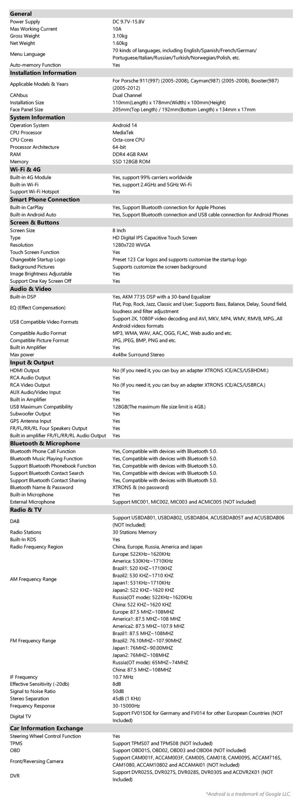 アンドロイドオクタコア4GB DDR4 RAM + 128GBソリッドステートROM 8″ 1280×720 IPSスクリーンカーステレオマルチメディアプレーヤーGPSナビゲーションシステム内蔵CarPlay&アンドロイドオート&DSPスクリーンミラーリングハイパワーTDA7851アンプUSBテザリングTDA7708 RDSラジオサポートAHDカメラポルシェ911/ケイマン/ボクスターのためのカスタムフィット