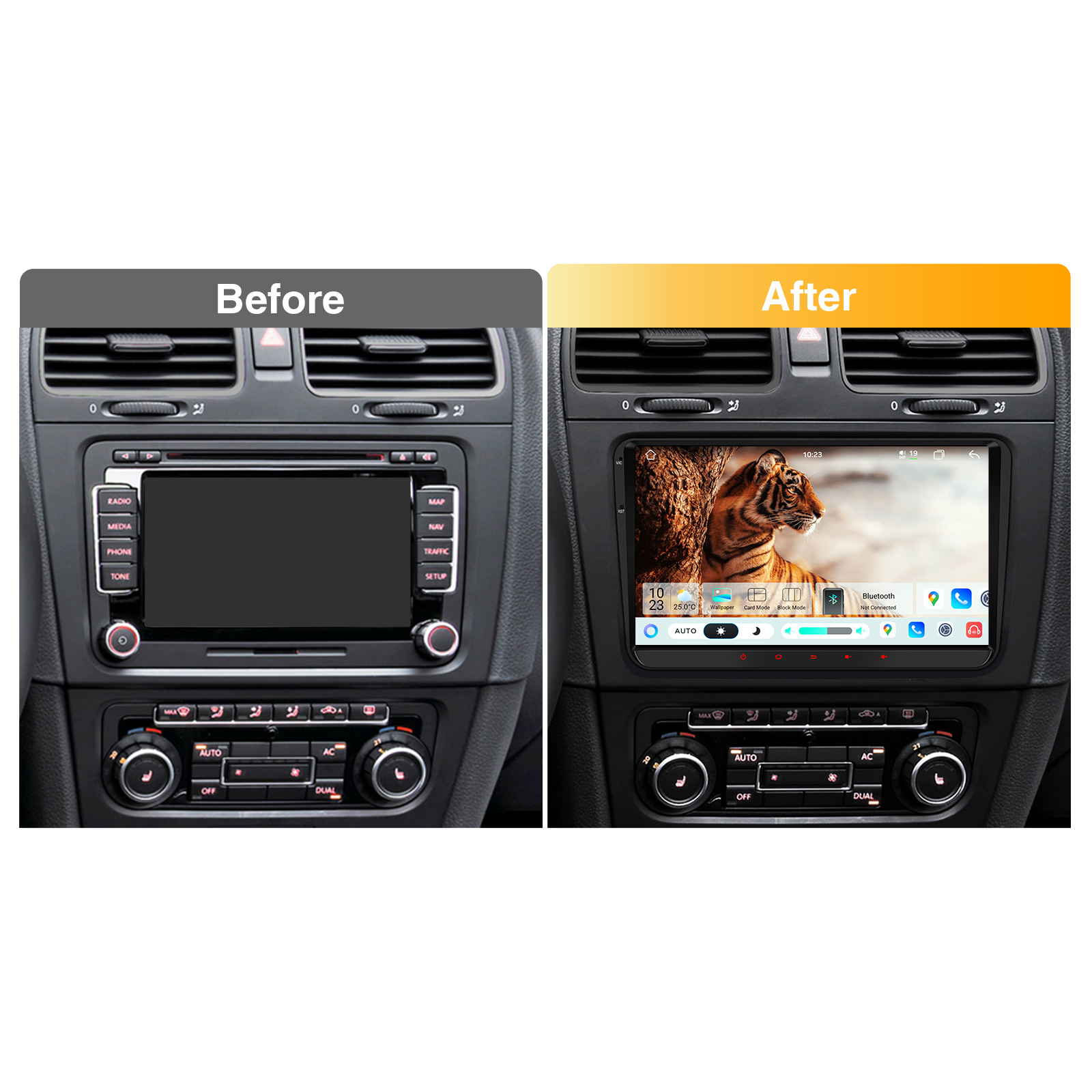 1. Please check your VW T5 vehicle’s centre console and compare with the picture. If it is quadratic in shape as the picture shows, this unit will NOT fit your car.