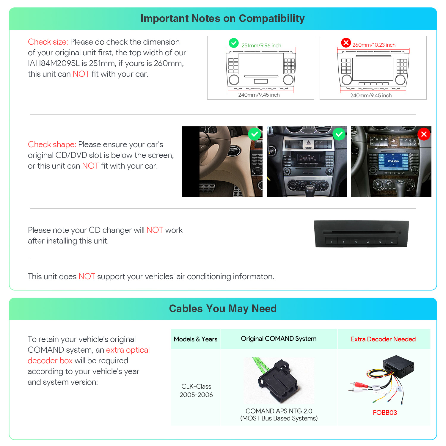 2. This unit does NOT support your car’s Dynaudio or Fender sound system.